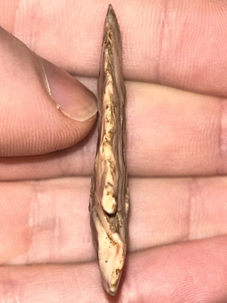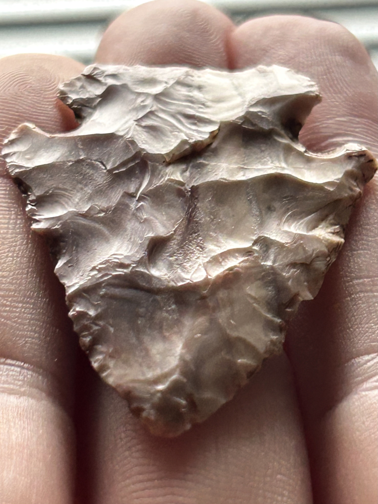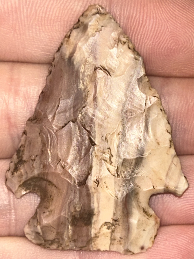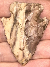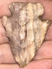 A nice Big Creek found in Boone County, Missouri. Made from beautifully colored heat treated Burlington chert. Very thin and well made.