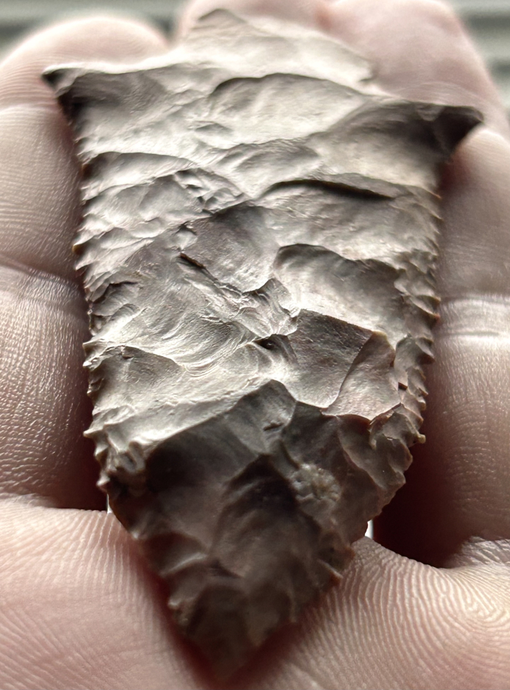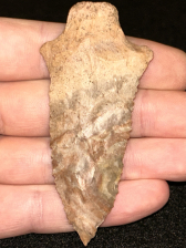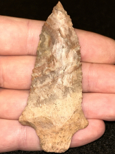 An excellent Pickwick found in Humphreys County, Tennessee. Made from colorful Fort Payne chert that is nicely patinated. Nice style with lightly serrated edges and sharp tip. Ex: Tate collection.