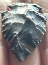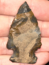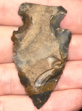 A nice Hopewell found in Woodford County, Kentucky. Made from beautiful multicolored Sonora chert. Retains some original flake surface on one side.