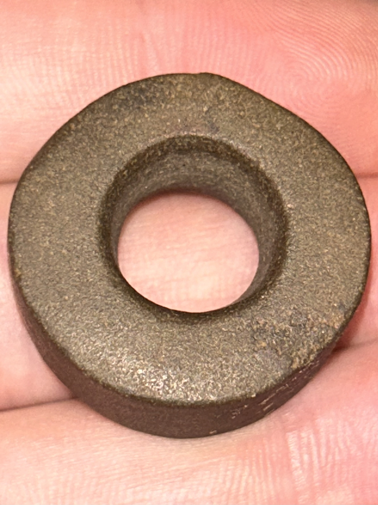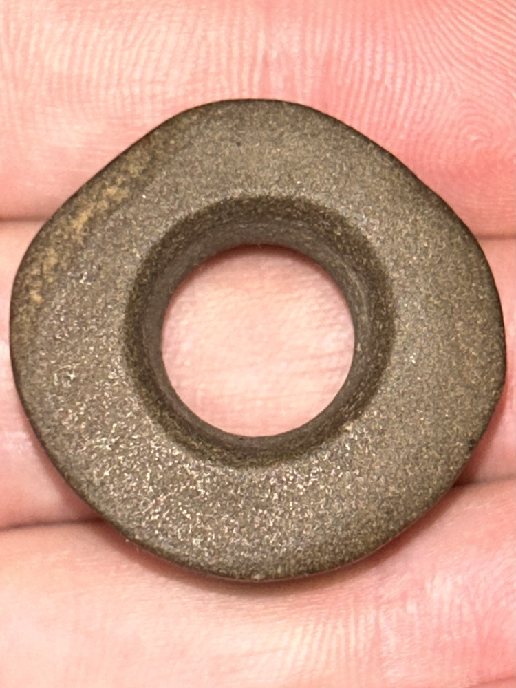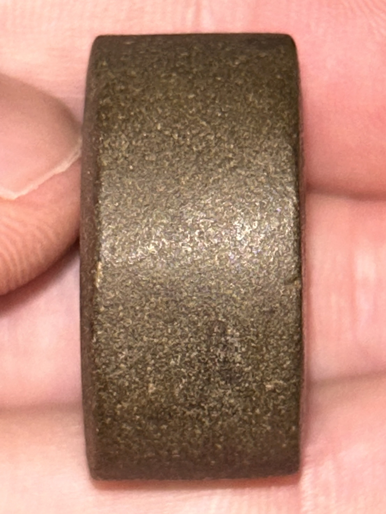 A fine and rare Tube Bead found in Posey County, Indiana. Made from nicely patinated brown hardstone. Well crafted with good drilling and polish.