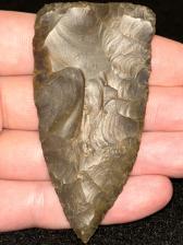 A fantastic Archaic blade found in McCracken County, Kentucky. Made from beautifully water patinated Hopkinsville chert. Well made with nice flaking and symmetry. Ex: Chris Barnard.