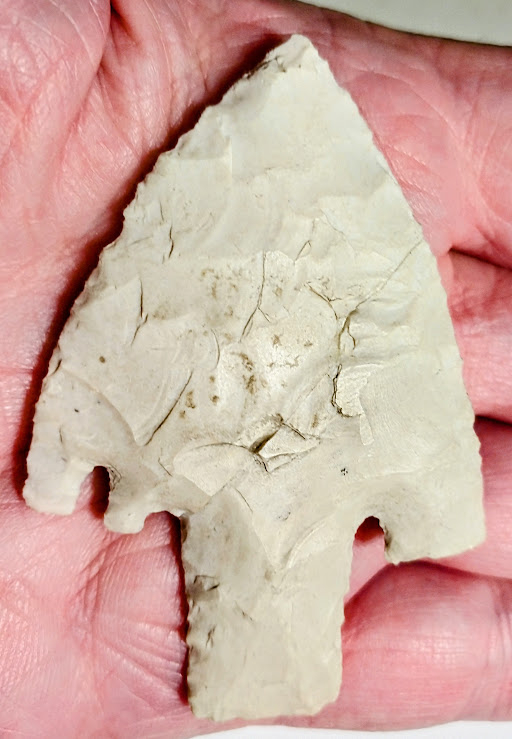 This is a rare example of an Andice Eccentric point. It was found in Williamson Co., Texas, and comes with a Dwain Rogers COA. Both ears on this piece were broken in ancient times, and one of them was re-notched to form the eccentric piece.