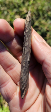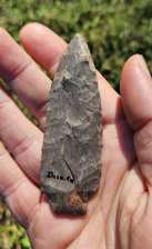 Gorgeous elk river point found by Hugh Dossett in Dickerson Cave in Todd County, KY. Incredibly well flaked with defined diagonal pressure removals, which is classic for the type. Definitely made by a skilled individual, material is dover chert. Measures 3 1/8 inches long. Fantastic West Kentucky relic!