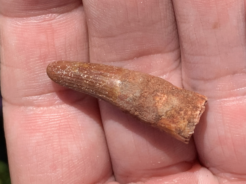 A 1 3/8” fossil Spinosaurus tooth with case included