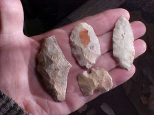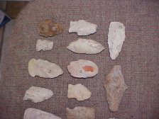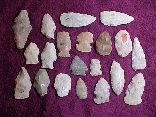 Total price is $30, and that includes the shipping cost on these Lawrence County, Illinois, points, knives, scraper tools--and a few that look to have had "double duty", (multi-function). Most are of Burlington Chert, that part of Illinois being where white flint becomes the most widely used lithic material. They're real, period. I welcome checks, cash, or M.O.s, but I do not use paypal-type payment services--Roy A.