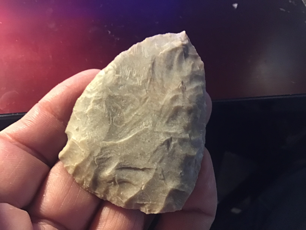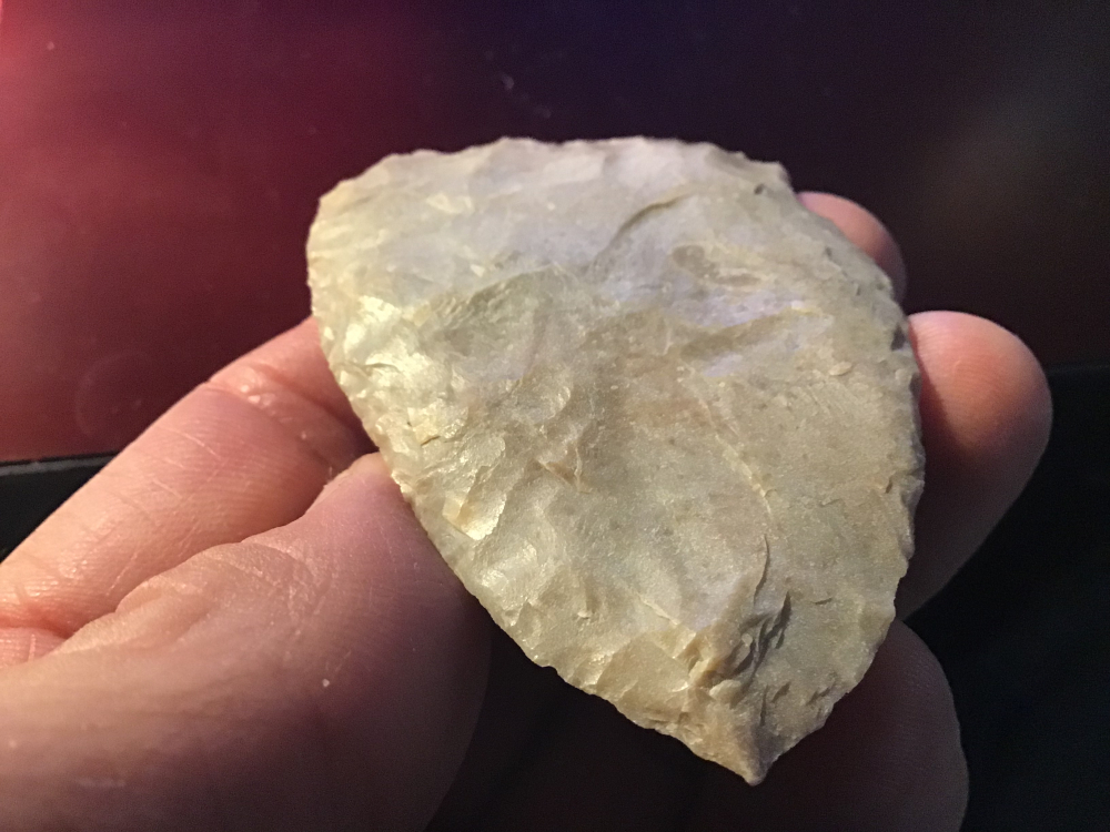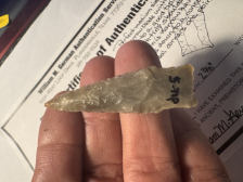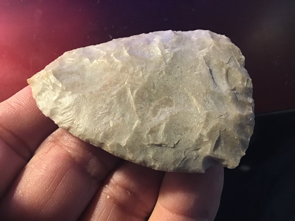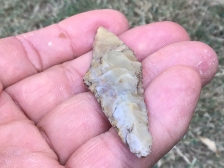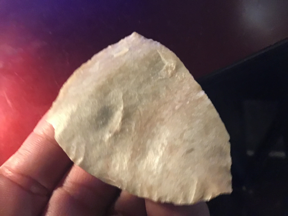 Sand polished material, very thin with a fine tip, this uniface scraper is from Zapata county. It has a slight ding on one edge. I will guarantee authenticity and satisfaction.