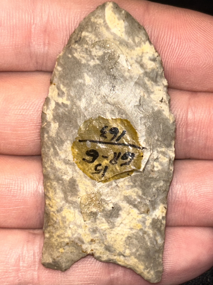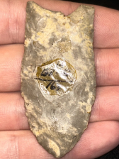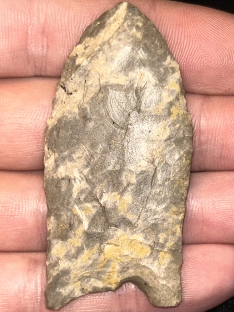An outstanding Clovis found in Grayson County, Kentucky. Made from attractive mottled Fort Payne chert. Great style and very finely crafted. Ex: Doug Goodrum.