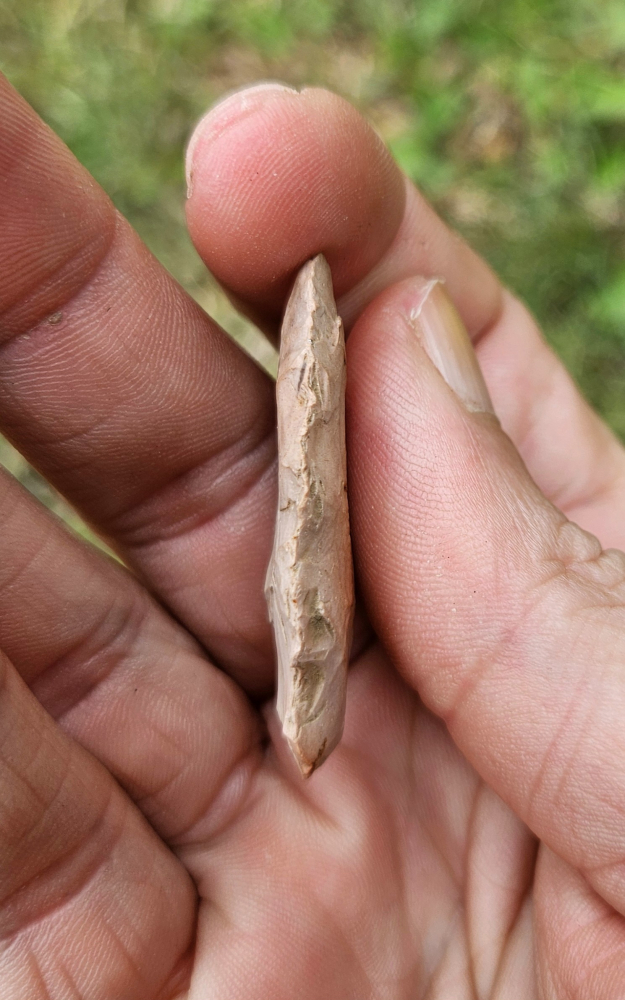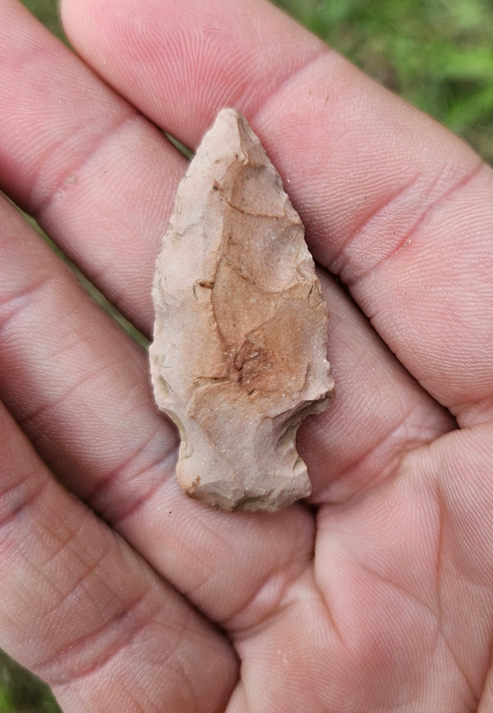 Nice little hopewell period Dart Point from Kincaid Mound in Illinois. Nicely made from lovely heat treated pink chert. Measures 1 1/2 inches long.