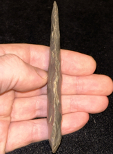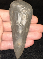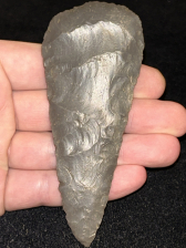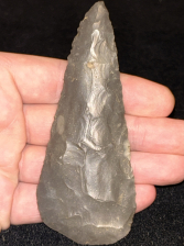 An outstanding Cobbs blade found in Posey County, Indiana. Made from very glossy grey Hornstone. In excellent condition with fine workmanship and form.