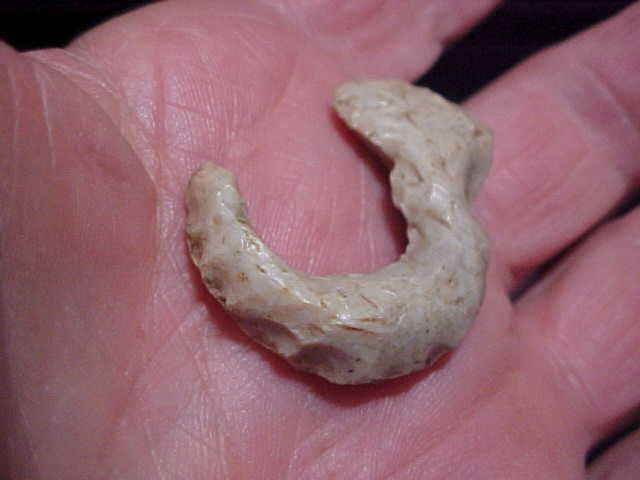 Back in my youth (as a new collector) in the early 1970s, goofy flint items like this flint fish hook (plus flint buffalos & flint thunderbirds) were flooding the market...not sure why, but the "Oh, now wait a minute" pieces like this have become 'collector's items'. I've seen collectors build whole cases of them, each person collects for their own reasons. Hey, some people collect "Grey Ghosts", those 1950s Edwards Plateau, Texas, flint blades made into giant fake 'spears'. Anyway, if you ever wanted a fake flint fish hook, shipping is $8.00, and I take payment only by cash, check, or M.O.--Roy A.