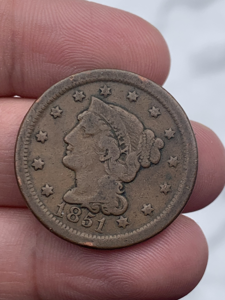 A 1851 Copper Large Cent has very good
