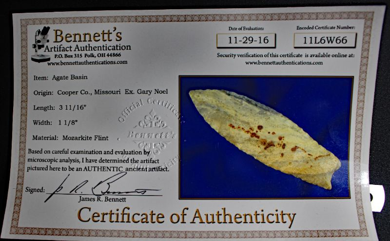 Certified authentic by Bennett, it offers a rare chance to add a high-quality, papered Missouri Paleo point to your collection.