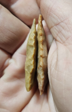 Excellent pair of San Jose points from Apache Co, AZ. Both are super well made and have wicked serrations. Very unique early type and great materials. Largest measures 1 3/4 inches long. Great stocking stuffers!