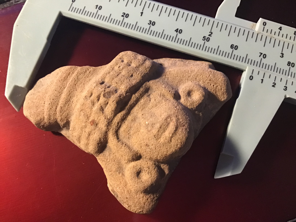 Found in Mexico, these pottery heads were often thrown in fields to increase crops. Not sure that is the case here since it has a hole drilled in it for what appears to be use as a pendant. I will guarantee it to be ancient and authentic. I have the shipping.