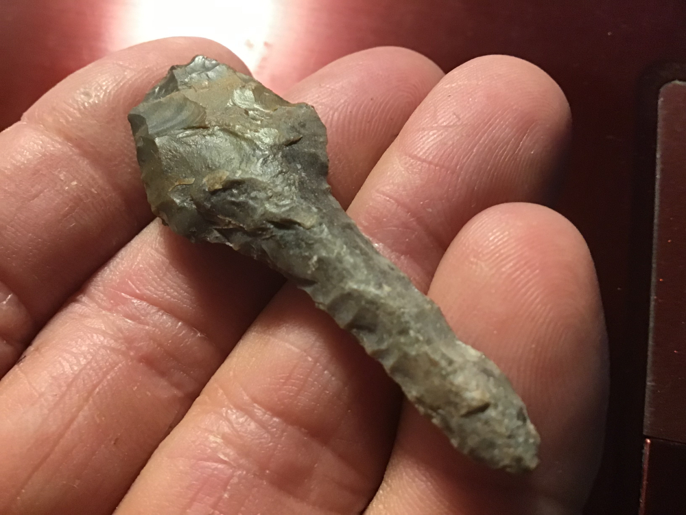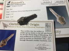 A fine drill from the Columbia River, could be Washington or Oregon. It shows heavy use wear and comes with a Bennett coa and Certificate of Origen. Made of colorful Chert. I have the shipping.