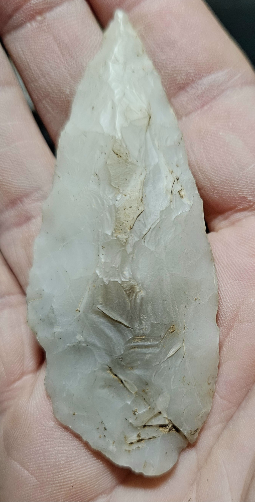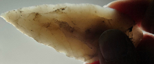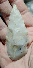 Interesting and beautiful blade from Illinois. Very well made from exotic novaculite, doesn't show up too often in the region. Great translucency and measures 3 inches long.