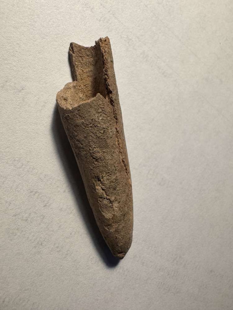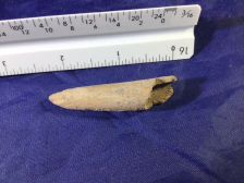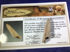 Made of Antler, this bone projectile point was part of a display at the Museum of Native American History. The artifact is in good shape for the age, no preservative has been applied. It comes with a Museum Deaccession Certificate. I have the shipping.