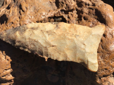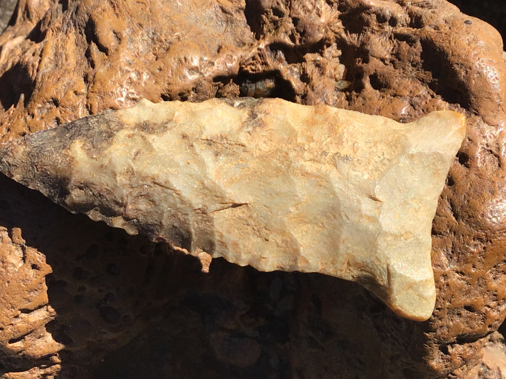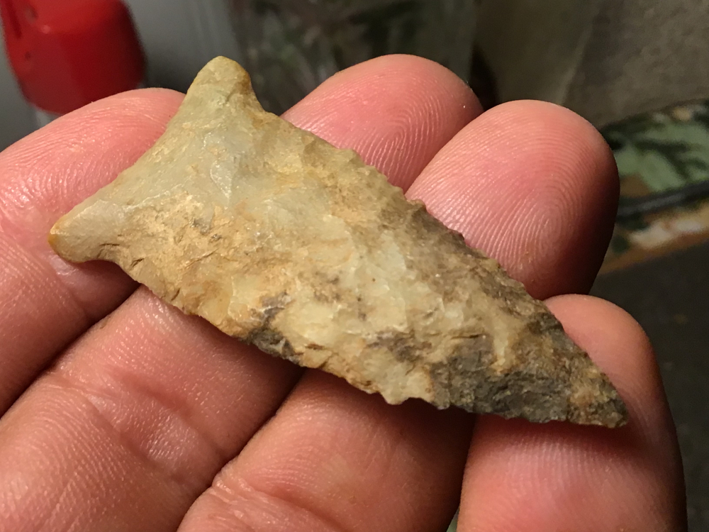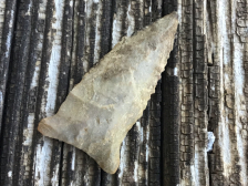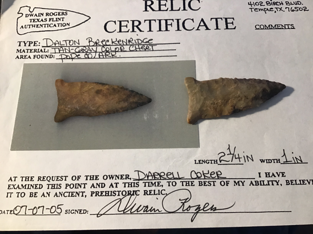 Base and stem show grinding on this Breckenridge Dalton from Pope County, Arkansas. Edges show use wear with some serrations and mineral deposits on the blade. It comes with a Rogers COA and I have the shipping.