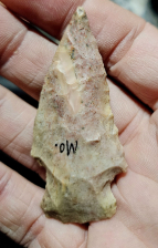 Pretty Dickson point from Arkansas. Super well made on a stunning piece of reed springs chert with lots of crazy motteling. Measures 1 7/8 inches long. Highly recommended point.