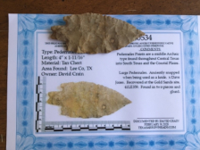 If anyone can use these, I will sure send them your way. Both are nice sized Pedernales, both are papered. One is broken in the middle and glued from the Gold Sands site. The Other has been retipped but still a nice sized point from Bandera County. I have the shipping.