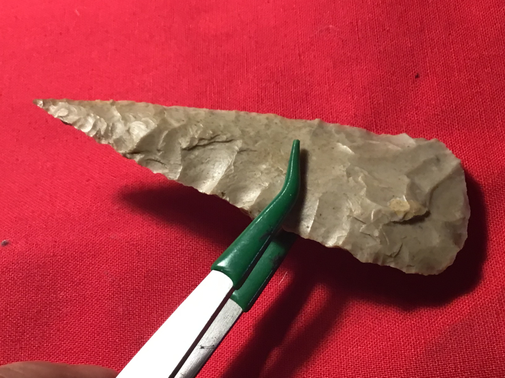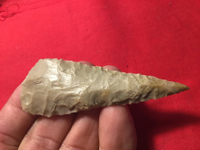 Heavy Patina, well flaked to a nice tip, this Refugio recovered in Comanche County shows heavy use wear with a thinned base. I will guarantee authenticity and satisfaction.