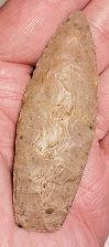 This is a very well-formed example of an Agate Basin point of paleo age. It was found in Madison Co., Indiana, and comes with a Dwain Rogers COA.