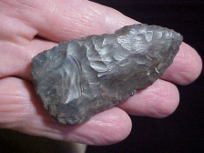 Sorting through a box of Gibson County, Indiana, tools of various sorts, all found along the Wabash River, these twenty are "group one". They're real, they comprise the flints, the point styles, the preform styles that were 'step one' to making finished point/ knife forms. The points themselves saw a lot of use, little dings or chips that might have prevented their salvage (and reuse)--as long as a point could be made into something else, whether it was a hafted scraper or a shaft scraper, it WAS...doesn't mean they didn't get reused, only that we haven't figured just what that later use was. Shipping is included with the price, and as I do not use paypal the only way to purchase the group is by check, cash, or M.O.--Roy A.