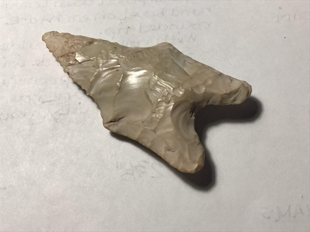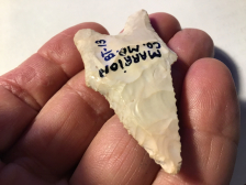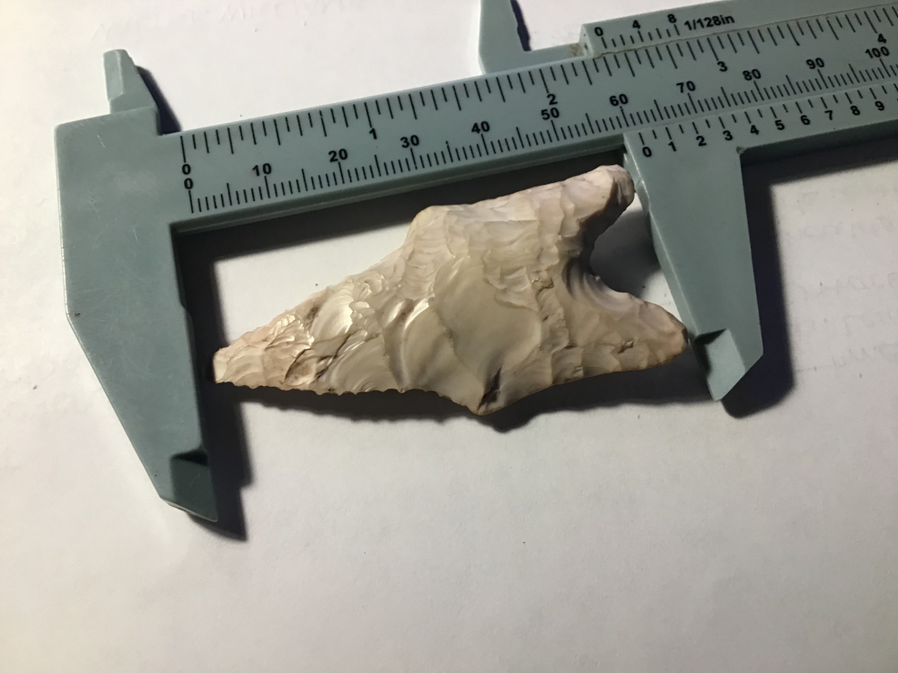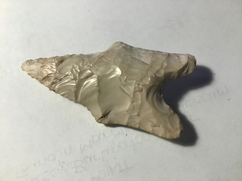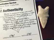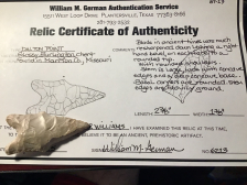 This fine Dalton was recovered in Marrion County, Missouri. The stem is large and heavily ground with a deep concave base. Made of Burlington, it has a nice tip with right hand bevels and lightly serrated edges. It comes with a Bill German coa. I have the shipping.