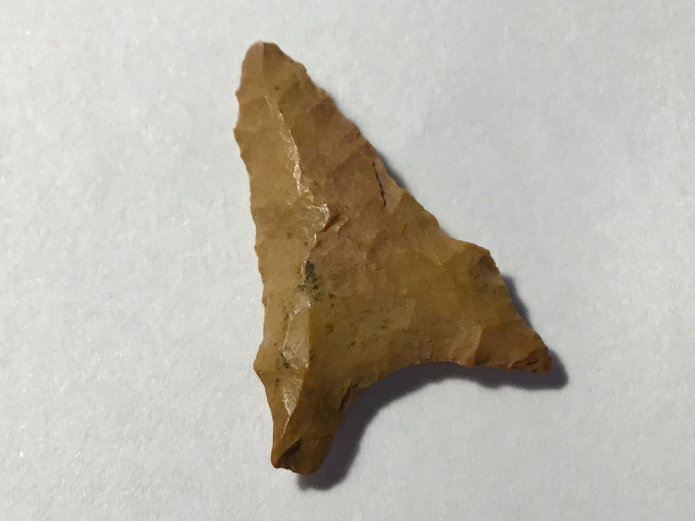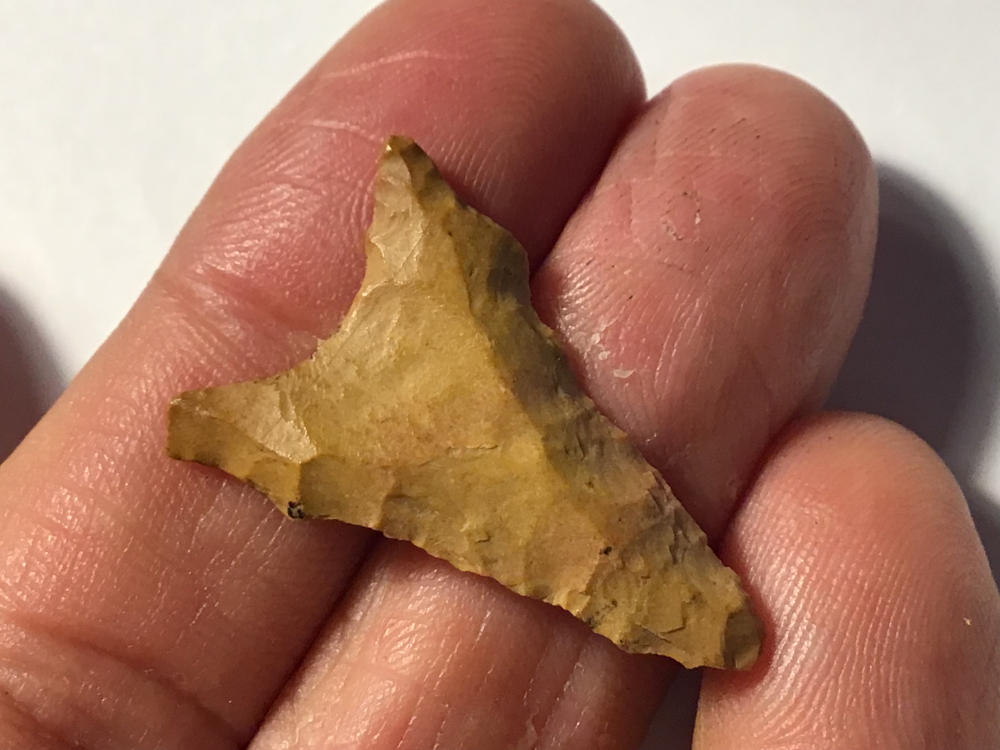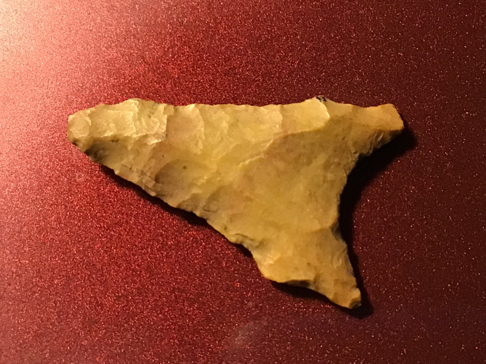 Heavily ground base that is fluted on both sides. This Wolf Head, San Patrice was recovered in Angelina County. Heavily patinated siltstone, it is anciently bifacially resharpened. I have the shipping and will guarantee authenticity and satisfaction.