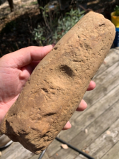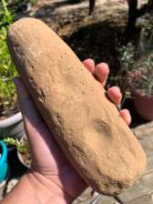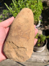 A 9” Sandstone Roller Pestle, this example has a double nutstone worked into one side and a single dimple in the other .