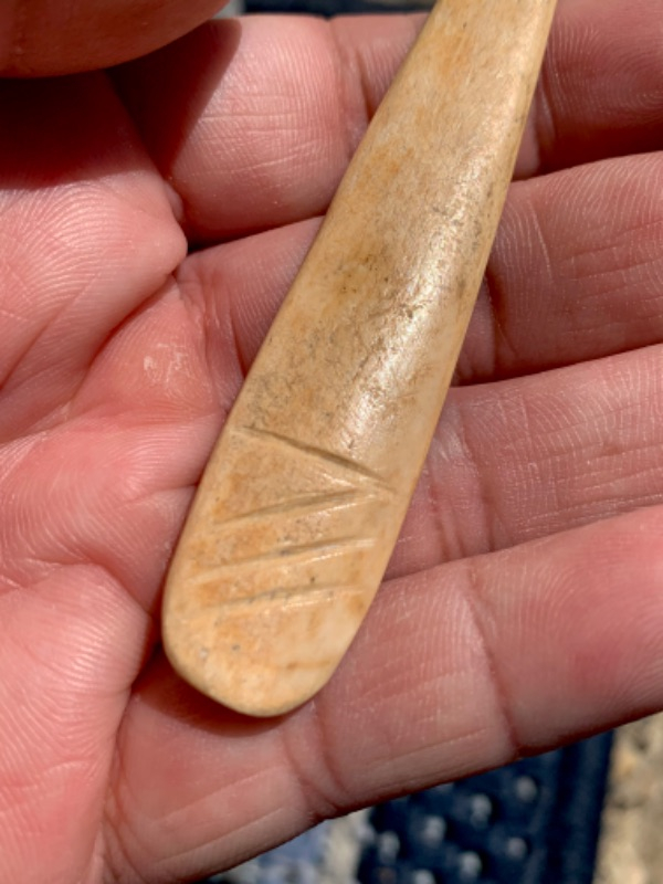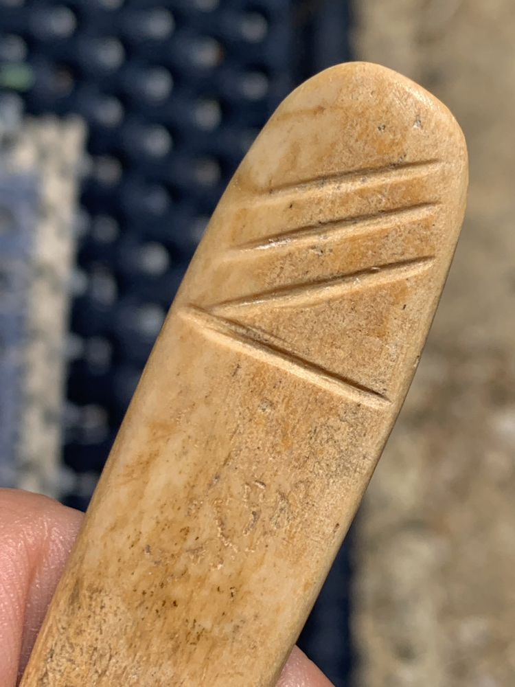 Pre-Columbian Bone Carving of Vulture Eating Monkey (RS) - Peru - Motley COA