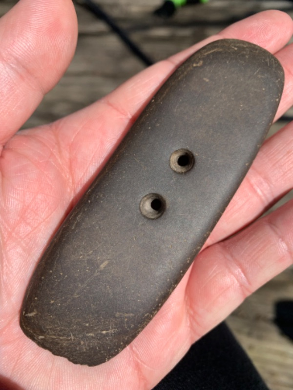 A 4 1/2” brown Slate two hole Hopewell Gorget
