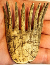This beautiful Cache Blade is made for a striking red chert. It was found in Woods Co., Ohio. This piece would look great in any color frame!