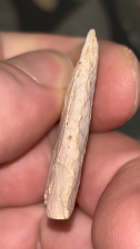 A fabulous partial St Louis style Clovis found in Bradley County, Tennessee along the Ocoee River. Made from a very heavily patinated white chert. Awesome form with great fluting and grinding.
