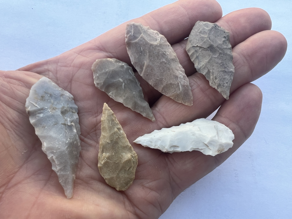 This group of 6 Catans, possibly a couple Desmukes from South Texas has nice color and a variety of material. Edges show use wear and I will guarantee authenticity and satisfaction. I have the shipping.
