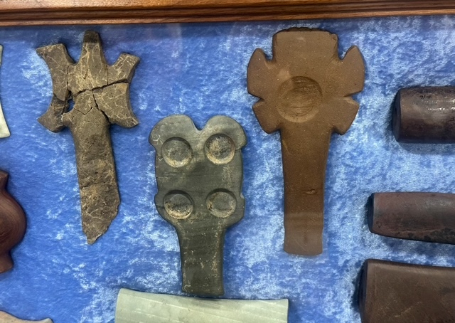 These two remarkable “Mississippian Style” Mace-like Artifacts were found about 20 miles apart in the Northeast Mississippi counties of Pontotoc and Chickasaw. Shockingly, these Relics were both found in context with Benton Culture Period relics (4210 B.C. – 2645 B.C.) which predates the Mississippian Mace by at least 3500 years! Does this re-write History?