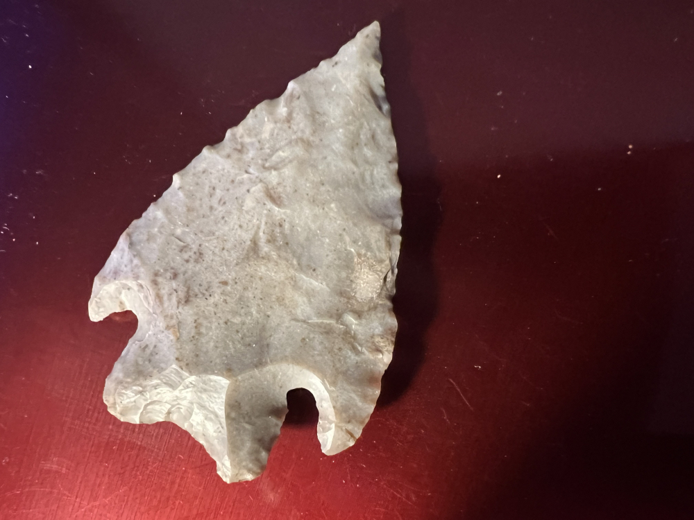 This Marshall is well patinated with a fine tip and complete barbs with pressure flaked lateral edges and slightly concaved base. I have the shipping and will guarantee authenticity and satisfaction.