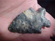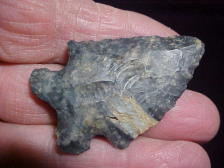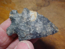 Last in a north central Indiana, collection, but "the estate problem" (with provenance)--did the man find or buy the Bifurcate--the auction people sure didn't know, so to state what I DO know: every conceivable detail is lifetime (mine) guaranteed authentic. The flint is Ohio Coshocton, length is 2&1/16" by 1&5/16", well thinned at 5/16", a very skilled Early Archaic Culture flint knapper, whether he was in Indiana, or in Ohio. Both basal grinding and bevel sharpening are excellent--I see slight--very slight wear on the tip and use polish from how the point was worked--barbs and basal corners are in great condition. When I mail out the point what info I have will go along with it. Shipping is $8.00, I welcome checks or money orders, but I do not use paypal-type services--Roy A.