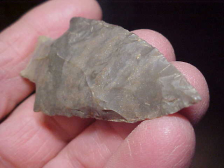 A nice piece of hornstone, this Buck Creek/ Smithsonia Late Archaic-into-Woodland time scape point. The chipping is the percussion work--with some pressure retouch--on the blade edges--very well made, very sharp point--and being that "later" timeperiod, a very sharp basal edge. For their own reasons, basal grinding wasn't ordinarily used. The piece is out of a Tipton County, Indiana, collection, well made and 100% guaranteed real. Shipping is $8.00, checks or M.O>s are welcomed. Sorry, I do not use paypal-type services--Roy A.