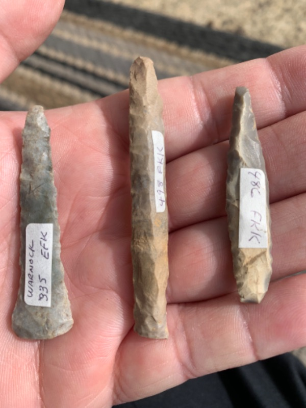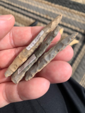 Look to be made of Hornstone or similar material .The largest is the center example at 2 3/4” long
