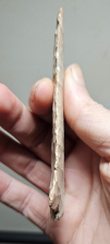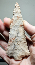 Amazing Dickson point from St Claire Co, Illinois. Unbelievably well made and wafer thin from Springfield variety Burlington, although I believe this is a Dickson it also shares some characteristics with Ross and certainly could be. Either way it's a great study piece beckoning for some restoration. Measures 4 1/8 inches long by 1 3/4 inches wide.