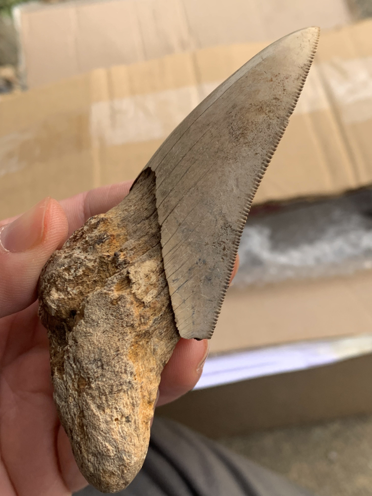 A 4” Indonesian Meg t@@th, this example has good size and nice super sharp serrated edges
