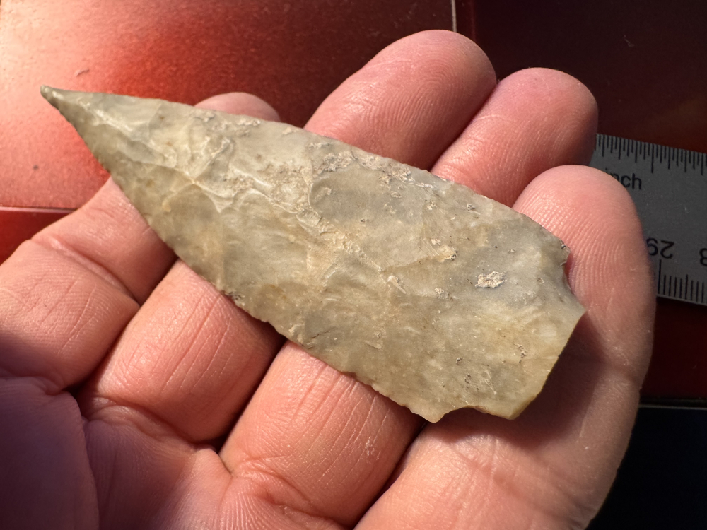 This is about as good as it gets for a Nolan point, except for the snapped base. It has outstanding flaking, and a fine extended tip. Purchased from the finder. Uvalde county- authenticity and satisfaction guaranteed. I have the shipping.