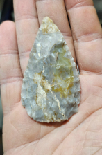 Excellent Hopewellian blade from Posey Co, Indiana. Very nicely made and thin on a gorgeous piece of derby chert with bursts of yellows and mottling. Measures 2 1/2 inches long by 1 3/8 inches wide. Definitely a Southern Indy gem!