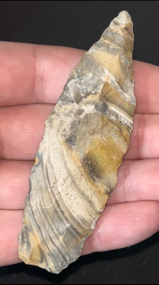 A fine Sedalia found in Pettis County, Missouri. Made from incredibly colorful creek stained Mozarkite. Nicely made with good size.