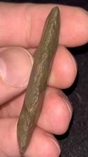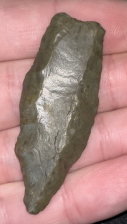 A very nice and rare Cumberland found in Kentucky. Made from medium brown material that is heavily water patinated and polished. Excellent fluting on both sides with one side being double fluted. Neat example.