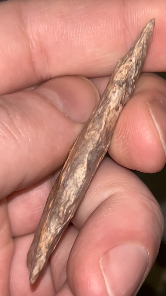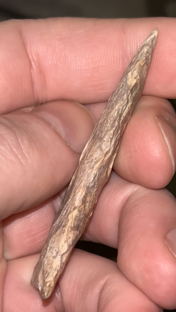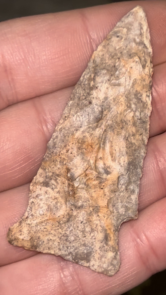 A super nice Rice Side Notch found in Cooper County, Missouri. Made from colorful heat treated Burlington chert. Nicely made and in good condition.