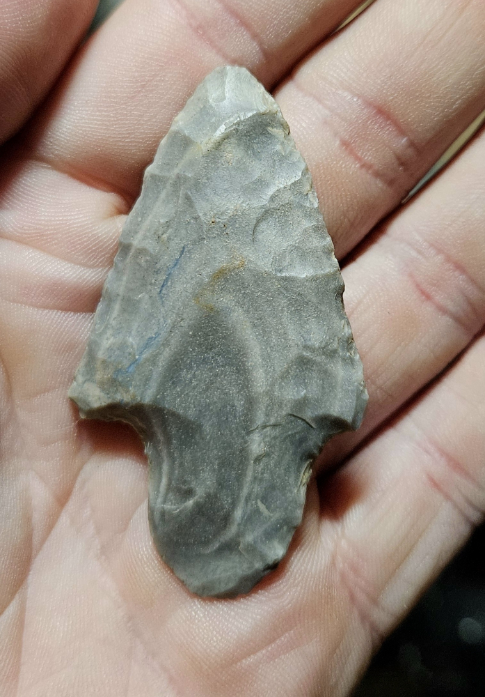 Nice Adena point from Southern Illinois. Very well made from gorgeous cobden chert with a lovely bullseye. Measures 2 3/8 inches long. Will make a fine addition to your frame.