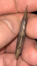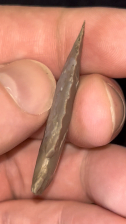 A fabulous Pinetree found by Jimmy Denny at the Swans Landing Site in Harrison County, Indiana. Made from glossy Hornstone with beautiful blue inclusions throughout. Very thin with superb workmanship and lightly serrated edges.