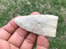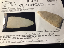 This is a very thin, very well flaked Friday Knife out of the Guy Gross collection. It is made of glossy chert with pressure flaked lateral edges. It comes with a Dwain Rogers COA. I have the shipping.